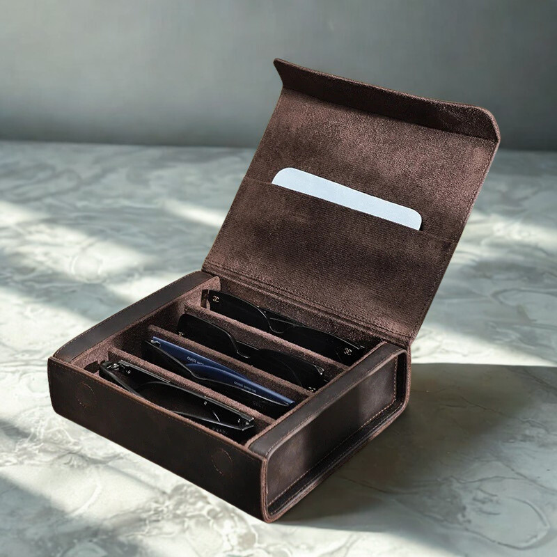 Onze luxe brillenkokers zijn met zorg ontworpen voor wie waarde hecht aan detail, uitstraling en kwaliteit. Gemaakt van hoogwaardige materialen zoals echt leer, bieden ze optimale bescherming zonder in te leveren op stijl. Een chique accessoire dat gezien mag worden, of je nu onderweg bent of je bril netjes wilt opbergen in huis.