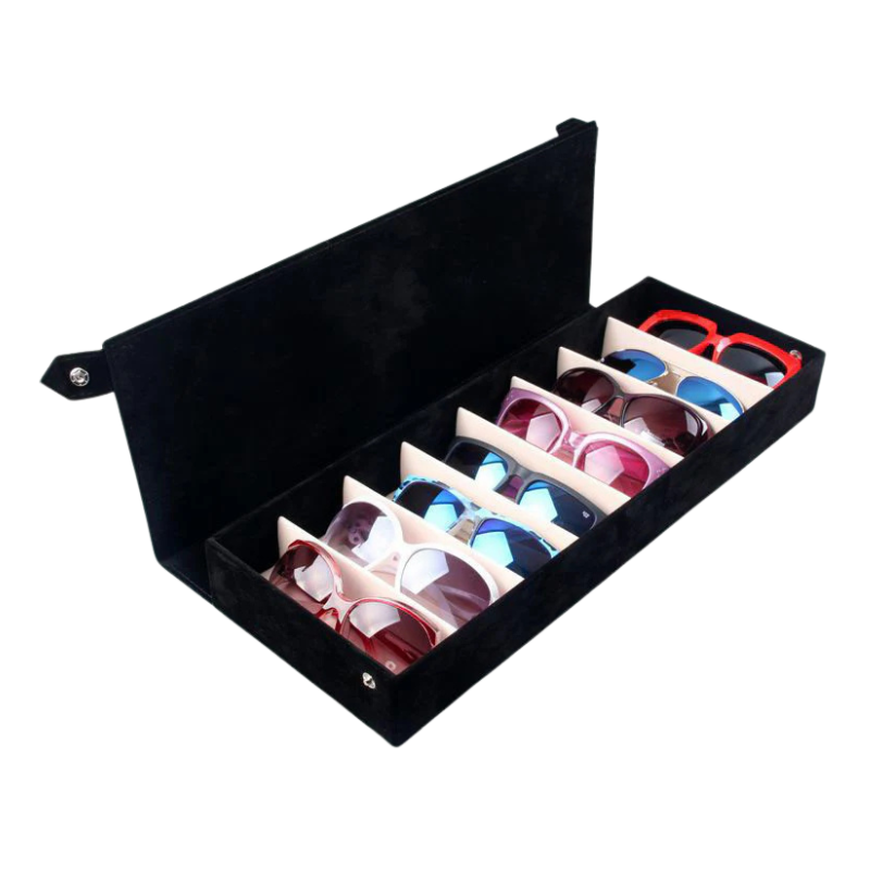 Voor wie luxe, overzicht en bescherming zoekt, is de Delphine brillendoos in zwart een perfecte keuze. Deze elegante opbergdoos is bekleed met hoogwaardig leren fluweel en biedt een veilige, stijlvolle plek voor het bewaren van brillen, zonnebrillen, horloges, sieraden en andere waardevolle accessoires.